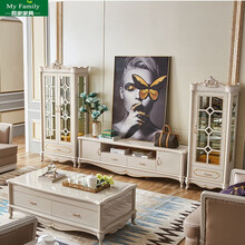 欧式轻奢2.2米电视柜茶几组合小户型客厅成套家具套装1.8/2米地柜酒柜 美式珍珠灰白烤漆电视墙柜 901双门酒柜+2.0M电视柜+901单门酒柜
