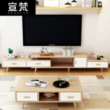 宣梵 北欧现代简约实木脚茶几电视柜组合客厅整装成套家具原木色可伸缩地柜 茶几