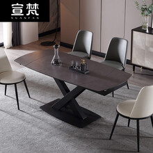 宣梵北欧现代简约岩板餐桌椅组合长方形可伸缩饭桌子大小户型客厅成套家具 功能拉伸岩板餐桌