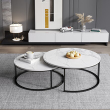 亲友 北欧意式茶几电视柜客厅家具成套整套 简易大小户型烤漆简约现代组合 大小圆茶几组合-黑色脚