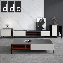 DDC意式极简轻奢岩板茶几电视柜大小户型整装成套家用储物柜子地柜客厅家具 1.35米茶几 岩板劳伦黑金