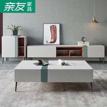 亲友意式极简轻奢岩板茶几电视柜边柜组合双抽屉大小户型成套整装简易客厅家具 1.35米茶几 岩板劳伦黑金