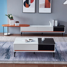 掌上明珠家居MZ 茶几电视柜 简约客厅玻璃面储物茶几 可移动伸缩置物电视柜成套组合家具 茶几+电视柜+副柜