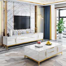 昻立家具 意式轻奢1.3米茶几2米电视柜客厅成套家具组合港式意大利风格整装后现代简约别墅极简套装板式 白色 1.3米茶几