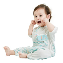 威尔贝鲁(WELLBER)婴儿睡袋夏季薄款汗布7分袖宝宝分腿睡袋网眼透气水波纹75cm