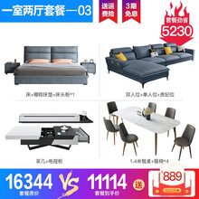 狄豪(DIHAO)一室两厅沙发茶几电视柜组合真皮床布艺床套装全屋家具套装组合 全屋成套家具 一室两厅套餐三 颜色尺寸联系客服备注