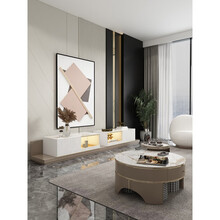 北欧大小圆岩板茶几电视机柜组合小户型简约现代轻奢客厅成套家具 轻奢岩板圆茶几 整装 框架结构
