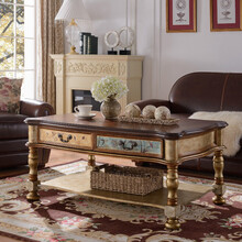 盛世锦木(SPJM) 欧式茶几桌子 茶台 美式成套彩绘家具 精品客厅家具 1.2米复古做旧描金 香槟金色