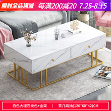 标捷电视柜茶几组合北欧轻奢风简约现代家用创意小户型客厅成套家具 白色大理石纹+金架