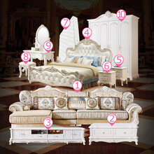 骏木 欧式卧室成套家具 布艺沙发茶几电视柜组合 超值套装组合 卧室客厅10件套 1.5米*2米排骨架款