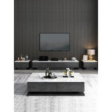 家弗 北欧简约客厅成套具岩板茶几电视柜组合套装轻奢茶桌火烧石边柜 茶几 整装