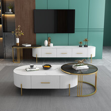 Pierides 茶几 轻奢茶几电视柜组合可伸缩客厅后现代简约小户型储物地柜岩板电视柜成套家具 伸缩茶几 整装