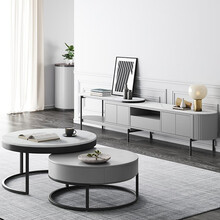 Pierides 茶几电视柜轻奢岩板茶几伸缩电视柜组合小户型客厅烤漆储物柜意式极简地柜茶桌成套家具 黑色框架 大小圆茶几