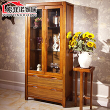 索菲诺(SOLFANOL) 新中式实木酒柜现代客厅玻璃酒柜两2双门酒柜装饰柜餐厅成套家具 9803双门酒柜