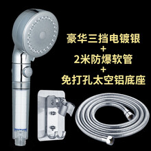 海立(HaiLi)德国增压花洒喷头超强三挡增压洗澡淋雨莲蓬头防爆加压沐淋浴霸花洒喷头单头 09966透明款+2米防爆软管+免打孔支架