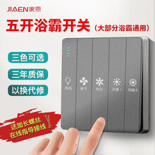 家恩浴霸开关全屏大板五合一通用86型卫生间浴室吊顶双电机电源吹风风暖联动开关面板 灰色