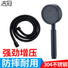 洁冠 304不锈钢增压花洒喷头淋浴家用热水器浴霸莲蓬头大出水沐浴洗澡喷淋头 304烤漆增压手喷+烤漆1.5米防爆管