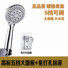 手持粗孔淋浴花洒喷头套装太阳能浴室洗澡通用沐浴花酒家用浴霸头 五档大面板+免打孔座