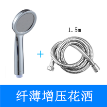 冷热水管花洒淋浴水管连接伸缩浴霸洗澡不锈钢软管圆形接头钢丝 1.5米+纤薄增压花洒 (长度可选