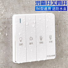 浴霸开关四开 16A卫生间防水开关面板带盖 86型通用风暖四开开关