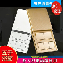 家用灯暖风暖浴霸开关四开五开明装防水通用面板卫生间浴室风暖开关五合一滑盖浴霸开关86型 四开白色