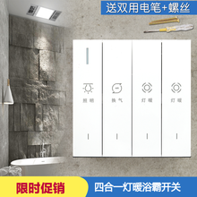 格兰(GELAN) 浴霸开关四开86型滑盖浴室防水面板四合一通用灯暖卫生间大板开关 四开