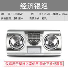 浴霸壁挂式卫生间灯暖家用风暖挂壁浴室暖风机取暖灯挂墙式定制 金属银【灯暖+风暖】-(银色灯泡)