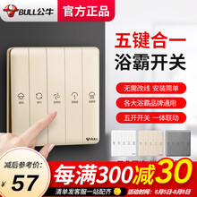 公牛(BULL)浴霸开关86型暗装通用五开家用浴室面板五合一风暖换气照明五开浴霸开关G28珍珠白 玫瑰金