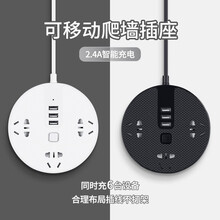 戴利普 插座USB充电电源圆形拖线板扩展电插板接线板多功能插线板学生宿舍3米5米插板爬墙插盘家用插排 圆盘 皎月白 3插位+3usb 1.8米