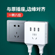 欣朵超薄插座转换器一转多无线魔方插座多孔USB带开关电源插头多功能墙壁拓展接线板夹缝一转三扩展插线板 一转八插座-白色(3USB接口)