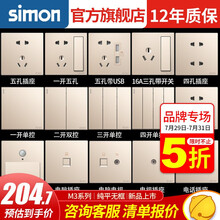 西蒙(SIMON)开关插座面板86暗装五孔插座空调16a墙壁网络单开双控开关一开五孔usb香槟金M3 金色五孔插座(10a)10只装