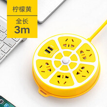 吉丁 多功能插座usb插排圆形带线多孔插板学生宿舍插线板3米5米接线板爬墙柠檬插座板 【配爬墙帖】5插位+2USB 黄色3米