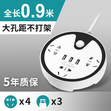 usb插座插排插线板排插接线板拖线板插板带线多功能插座板电插板多用电插座长线插电板插销板多孔3/5米 圆形 3插位+3USB 深邃黑 0.9米