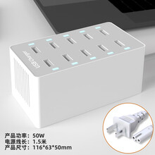 10口USB充电插座多孔插排手机多功能usb充电器6孔20孔40/60孔排插 10孔带散热器款 白色 (点击图片看产品