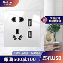 华帝斯(Nalthai)开关插座86型玻璃面板暗装二三插五孔电源插座带开关 晶点白色系列 USB五孔插座(真正玻璃面板)