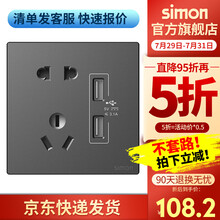 西蒙(SIMON)开关插座面板86暗装五孔插座空调16a墙壁网络单开双控开关一开五孔usb深灰色M3 五孔带双USB