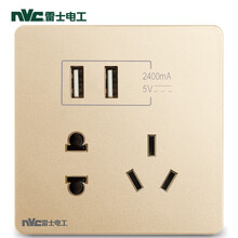 雷士电工(NVC)开关插座 带双USB五孔插座86型10A 二三插暗装墙壁开关面板 Q3心悦系列香槟金
