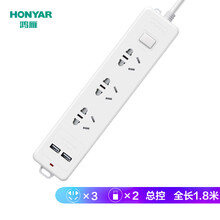 鸿雁(HONYAR)ZDK301U-18 智能2口(5V2.4A)USB+3位1.8米插座 儿童保护门 插排插线板/拖接线板