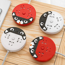 戴利普充电插板/USB插座/接线板/插线板/排插/插排/拖线板/带线多功能家用桌面爬墙插座创意长线 圆猫 黑白3插位 不带U 1.8米