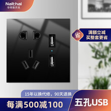 华帝斯(Nalthai)开关插座86型钢化玻璃面板墙壁暗装任意点开关 晶点黑色系列 USB+五孔插座(真正玻璃面板)