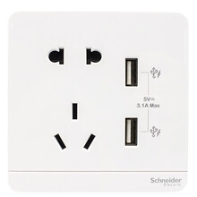 施耐德电气 五孔开关插座面板 带两孔3.1A USB接口 86型 绎尚系列 镜瓷白E83426102USB_WE