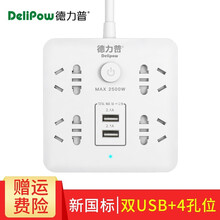 德力普(Delipow) 插座 USB排插 智能新国标插排/插线板/接线板/拖线板 双USB+3角插口*4+2角插口*4【1.5米】