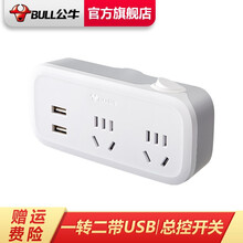 公牛(BULL)插排 多功能插座/一转多保护门/ 扩展转换器 /适用于卧室、厨房 GN-934Q 总控开关一转二USB转换器