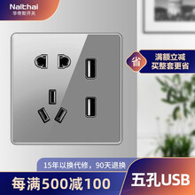 华帝斯(Nalthai)开关插座86型钢化玻璃大面板暗装带荧光指示五孔墙壁插座 A6灰色 USB五孔插座(2.5D钢化玻璃面板)