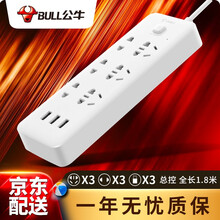 公牛(BULL)新国标USB插座/插线板/插排/排插/接线板 3插孔+3USB口带保护门插座 GN-B333U 6孔+3usb 总控1.8米