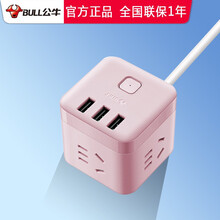公牛小魔方USB插座迷你轻巧带开关短线插线板多功能出差便携充电转换插头拖线板立式办公家用插排接线板 3孔+3USB茱萸粉全长1.5米GN-U303UP