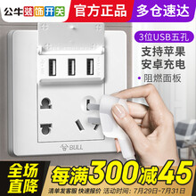 公牛开关插座面板三位usb五孔插座86型墙壁插座墙面10a多功能二三插电源暗装USB智能充电插座面板