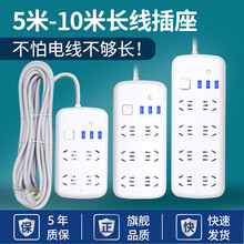 吉丁 延长线插座5米10米带USB插排加粗长线插板家用插线板5米电源充电排查带安全门多孔拖线板 D68款-2插位带Usb-5米