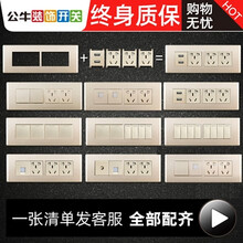 公牛开关插座面板118型五孔G04金四位十二孔12孔暗装USB带开关插座【底盒需另拍】 (四位)二十孔