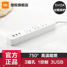小米插线板家用带开关电源插座插排插板带线接线板拖线板 3孔位3USB版白标配